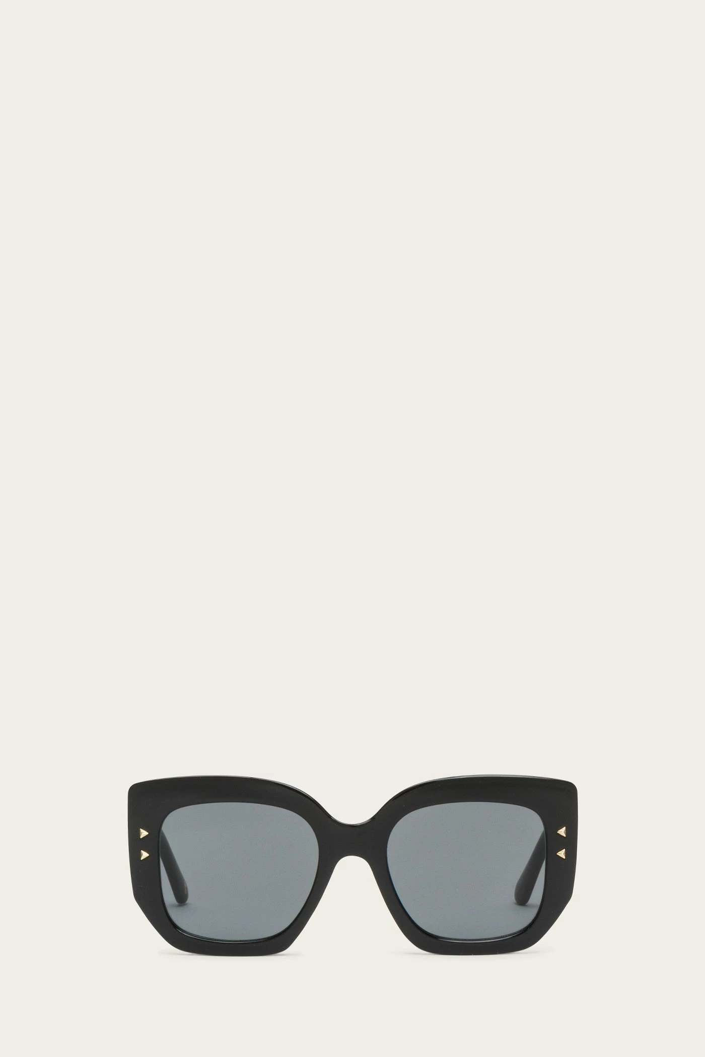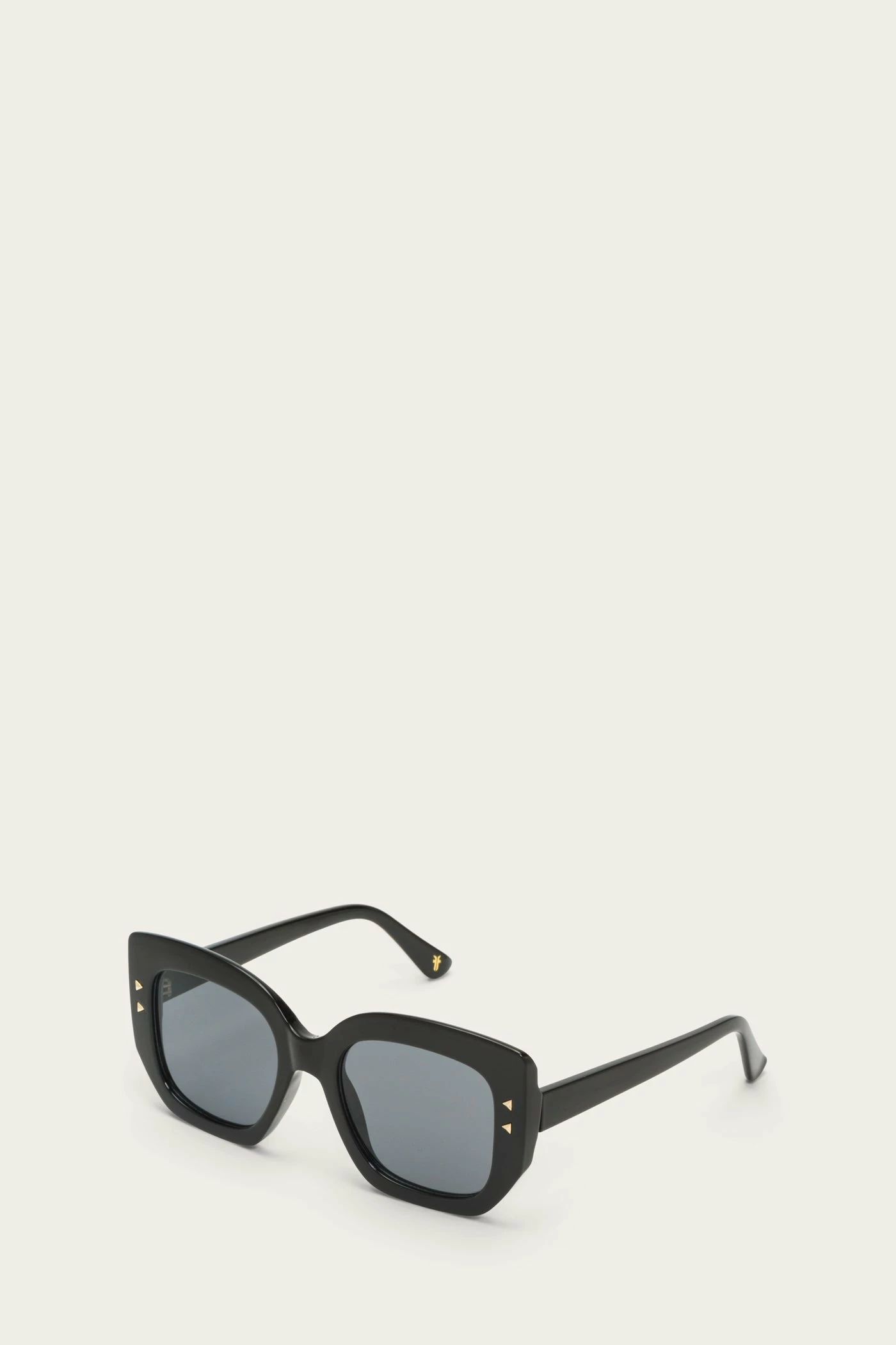 Go bold with Frye® Francesca sunglasses. These glamorous sunglasses show off an oversized square frame that’s made out of shiny black plastic and accented on the front with gold studs. The scratch-resistant smoke grey lenses provide 100% UVA-UVB protection and have an anti-reflective back coating to improve clarity.