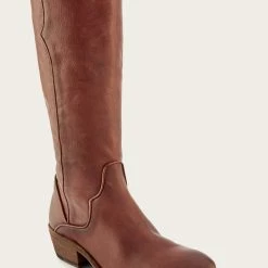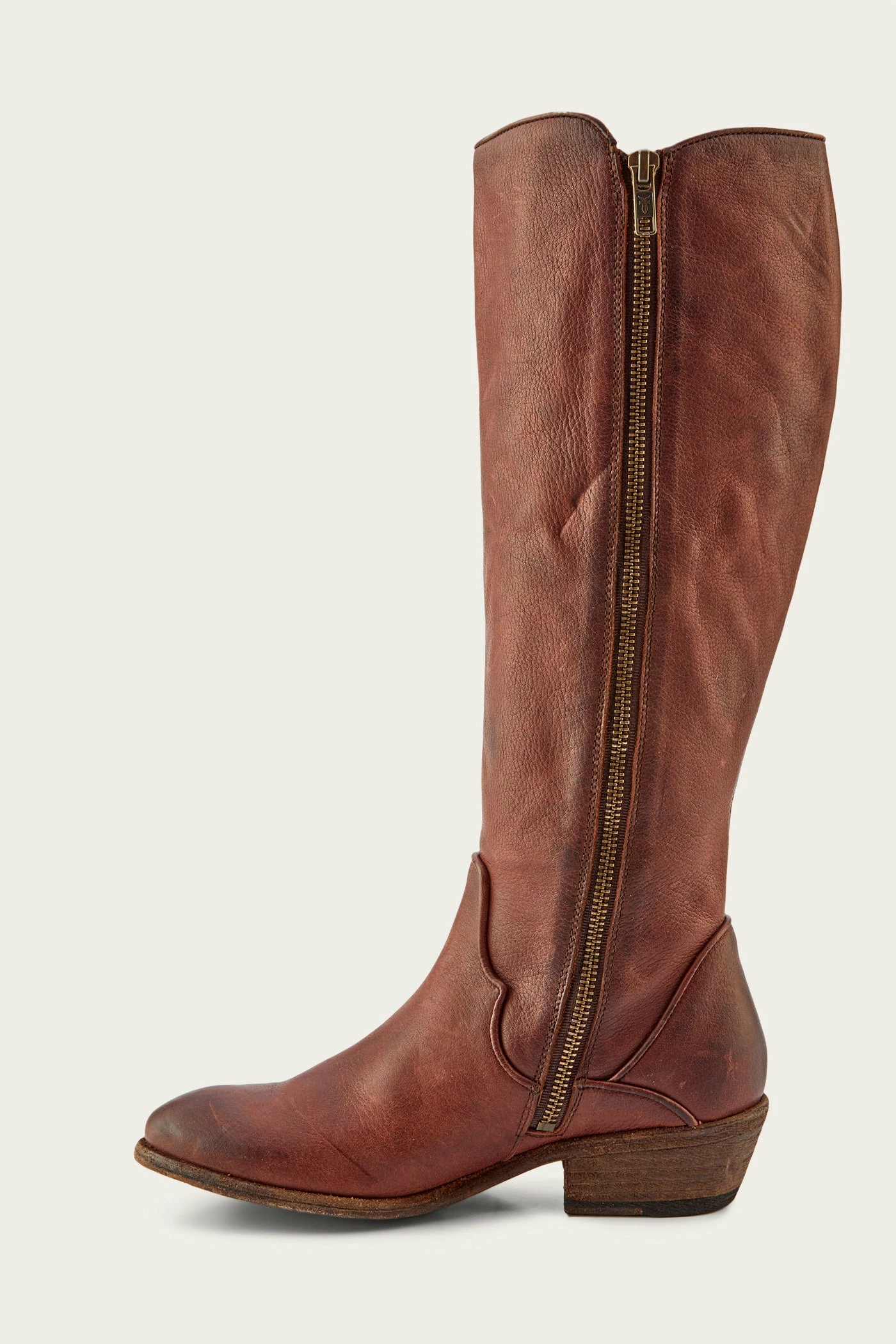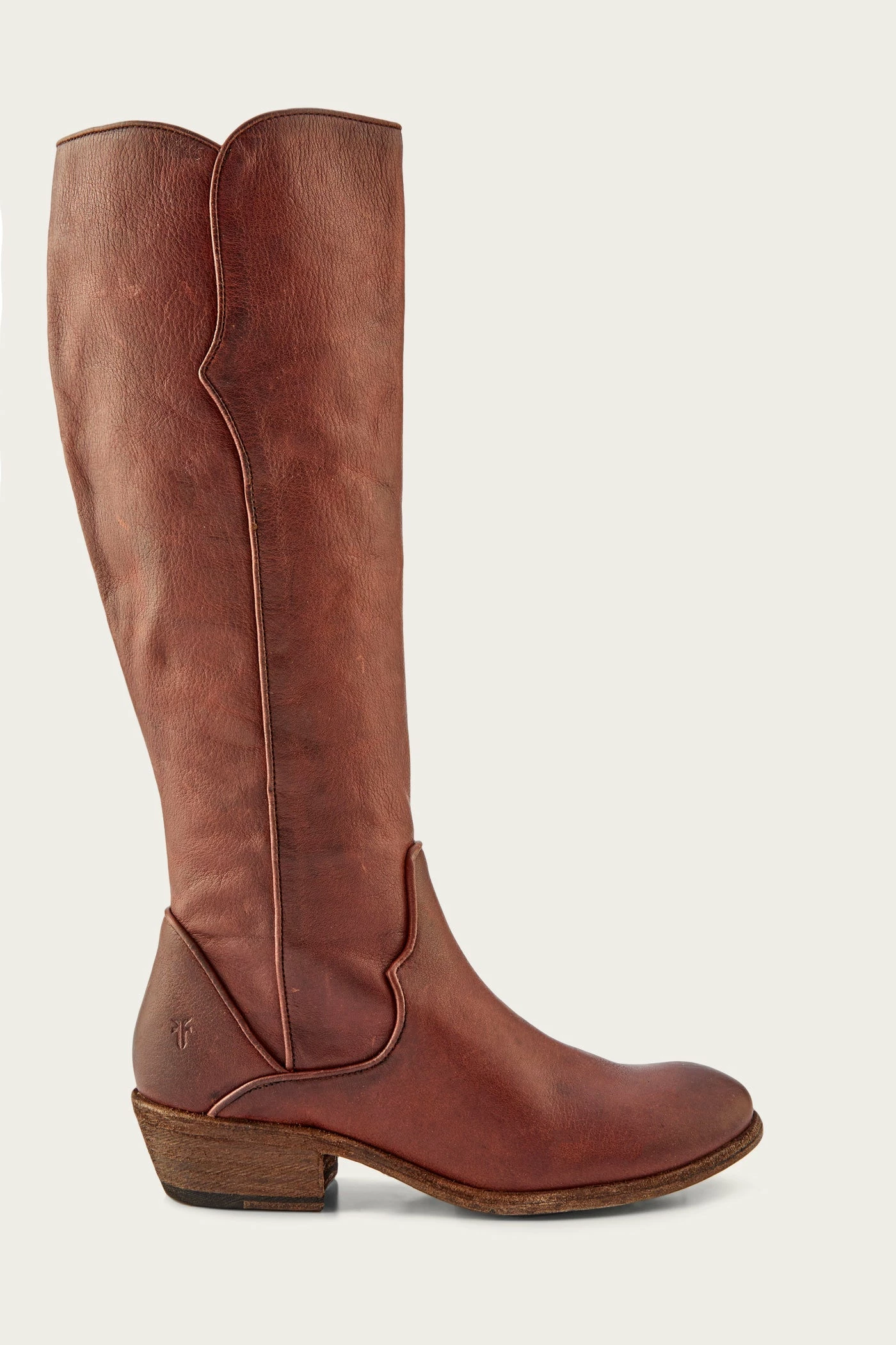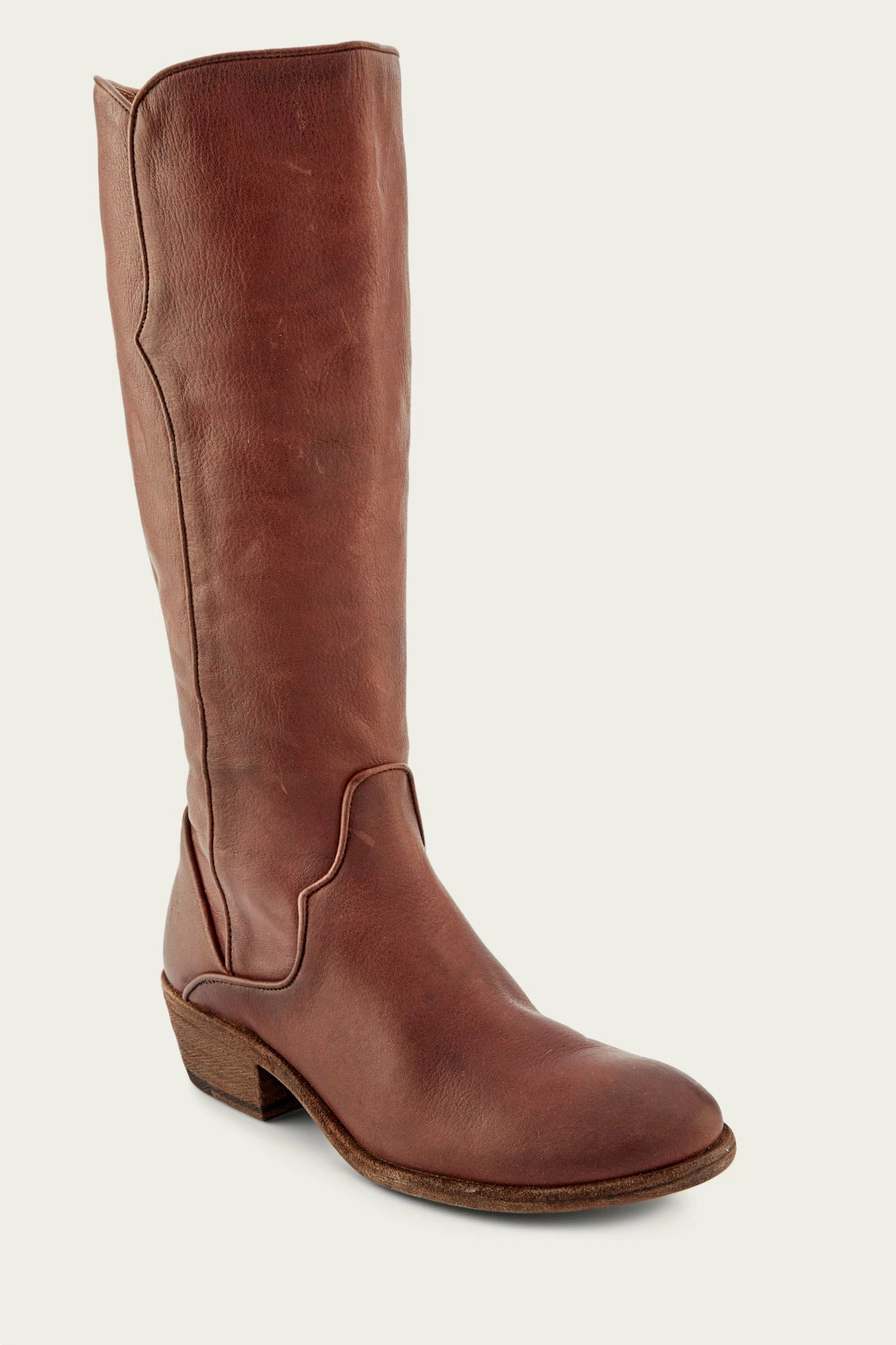 The Carson boot is one of the most highly anticipated tall boot styles this season, made from antiqued pull up leather and detailed with western-style piping. Constructed on a low heel with an inside zipper closure.