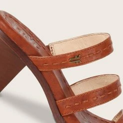 The Estelle Strappy Slide is the trend right sandal of the season. The flattering three-strap design is accented with top stitch detailing and finished with a cone-shaped stacked heel.