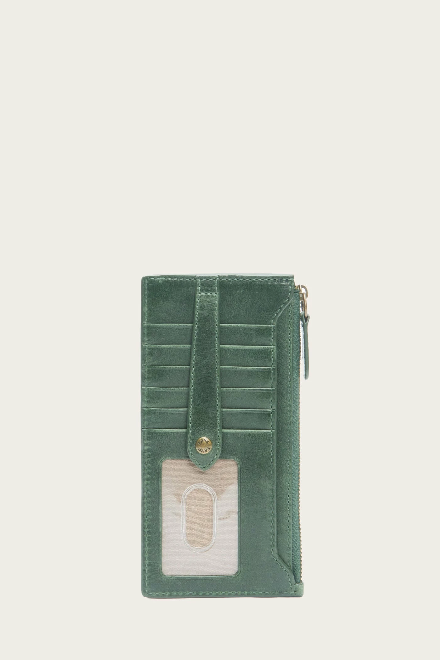 – 9 card slots, clear ID thumb slot, 1 slip pocket, 1 zip pocket