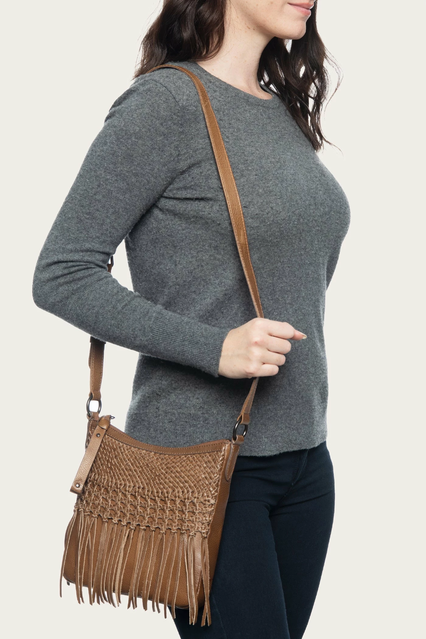 – Hand woven weave and macrame fringe