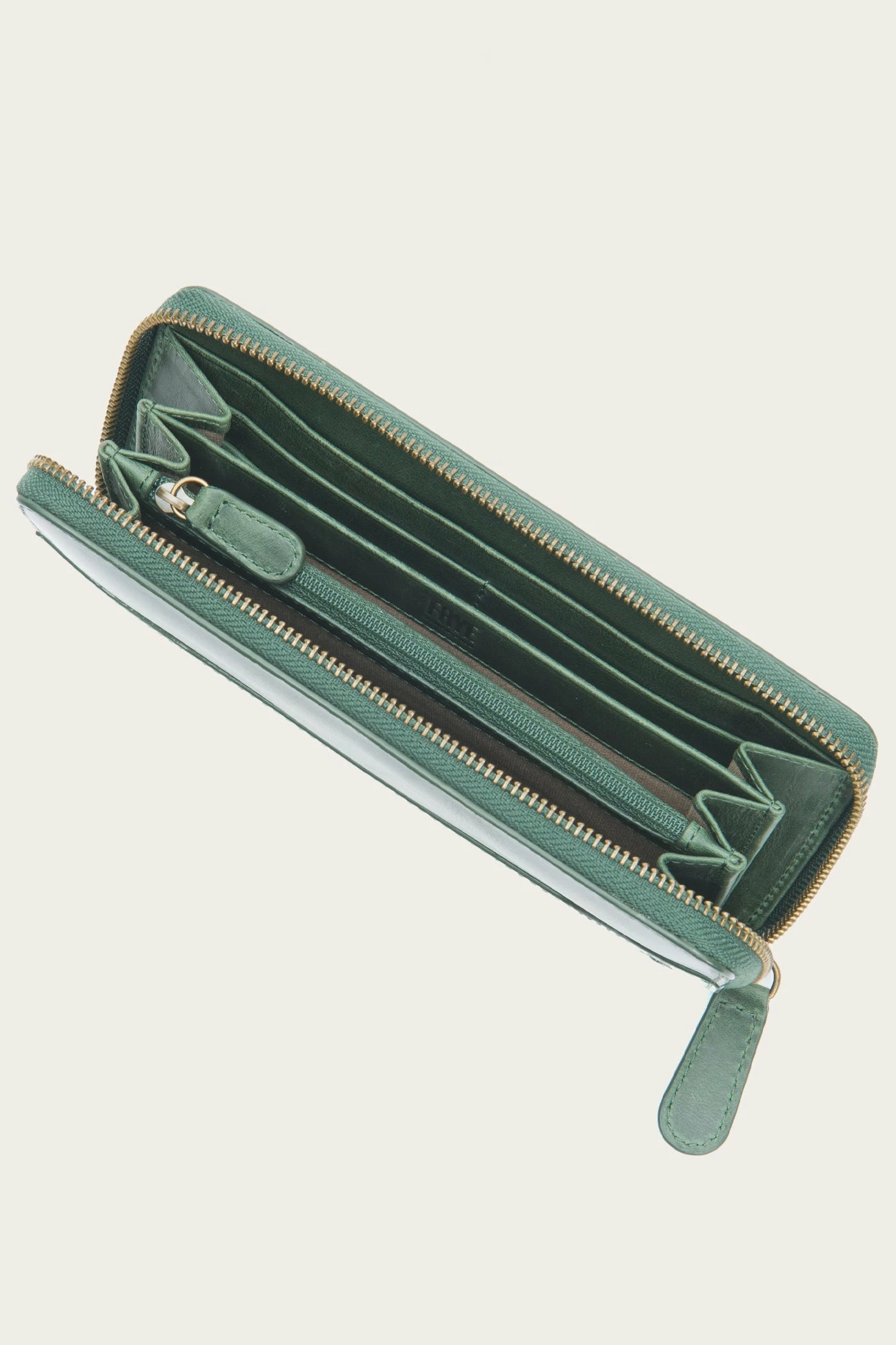 – 8 card slots, 2 billfold pockets, center zip coin pocket