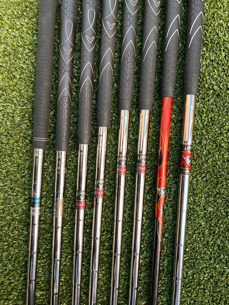 - RAZR Iron Set 4-PW+SW (7 Irons In Total) With Callaway RAZR Regular Steel Shafts And Callaway Grips. (4 & 5 Irons Are Diablo Edge With Callaway Graphite Regular & Steel Uniflex Shafts And Callaway Grips.