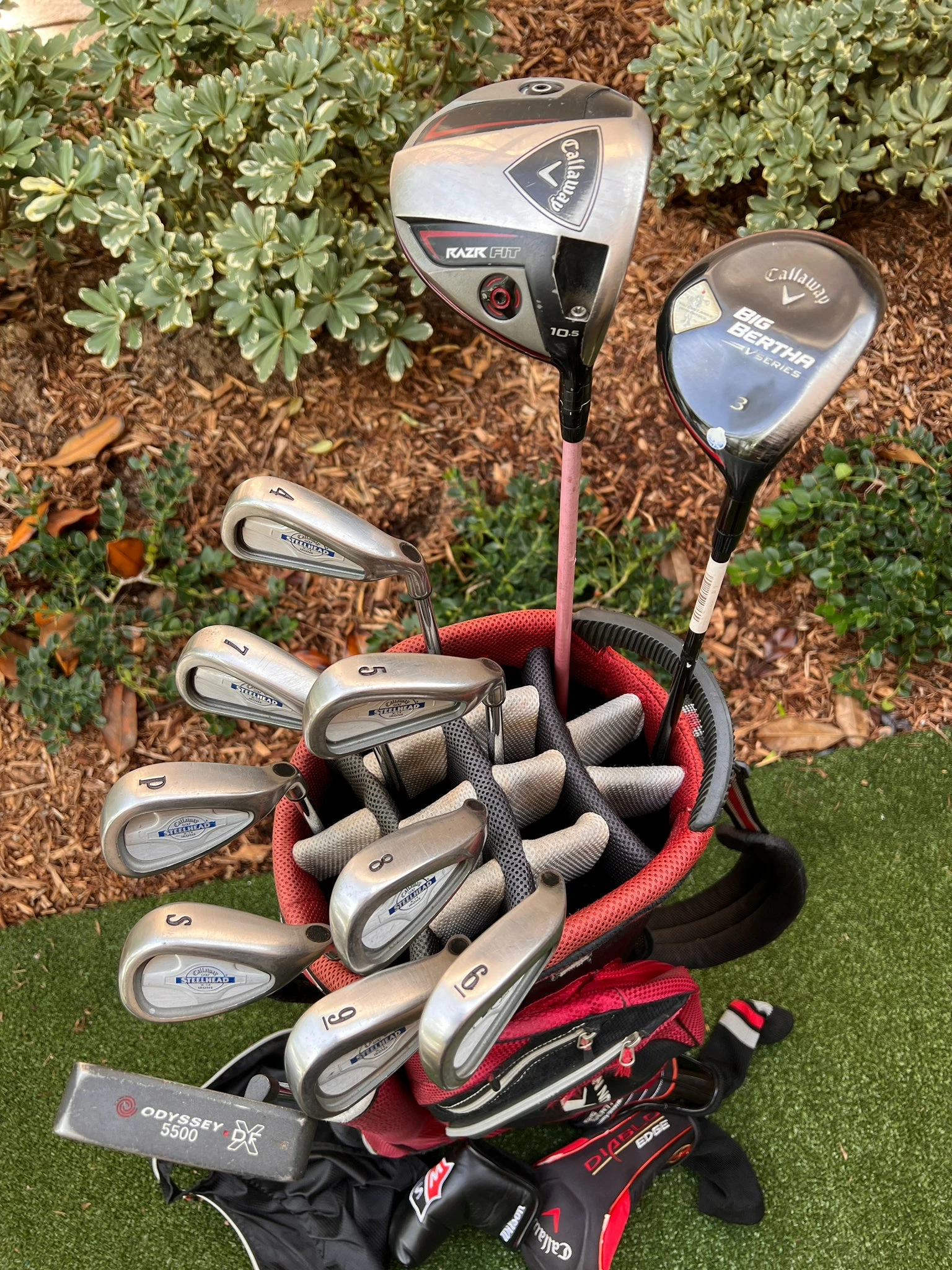 Www.chipnputt.com Callaway Complete Golf Set,Regular, Steelhead Irons,Woods,Putter,Cart Bag-Great!