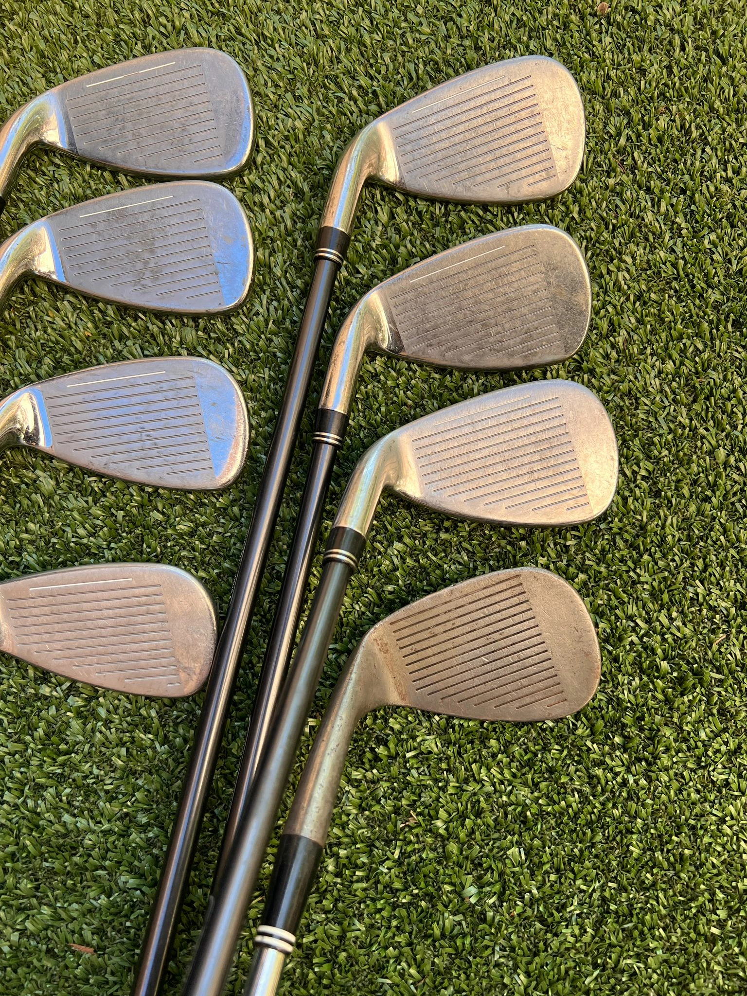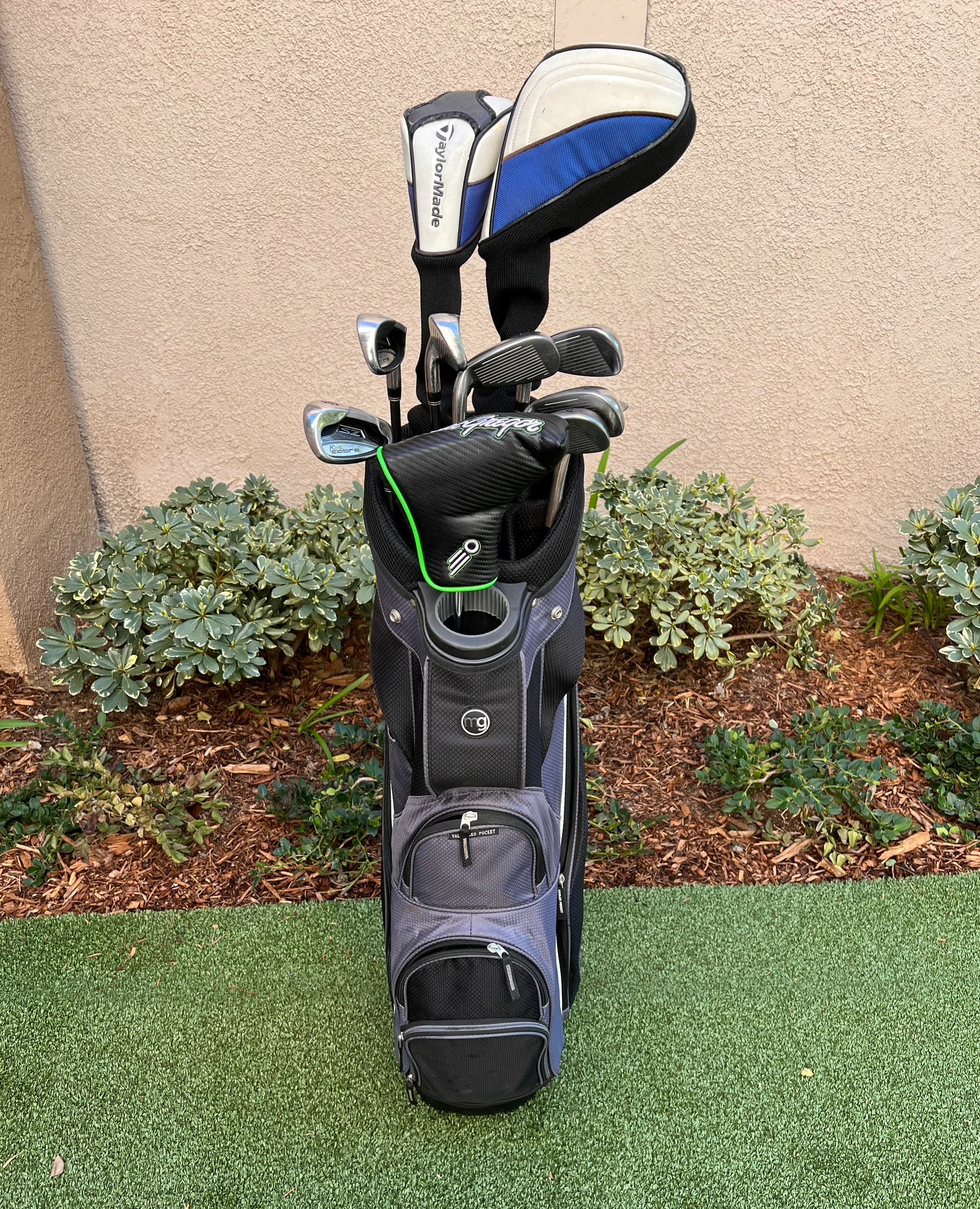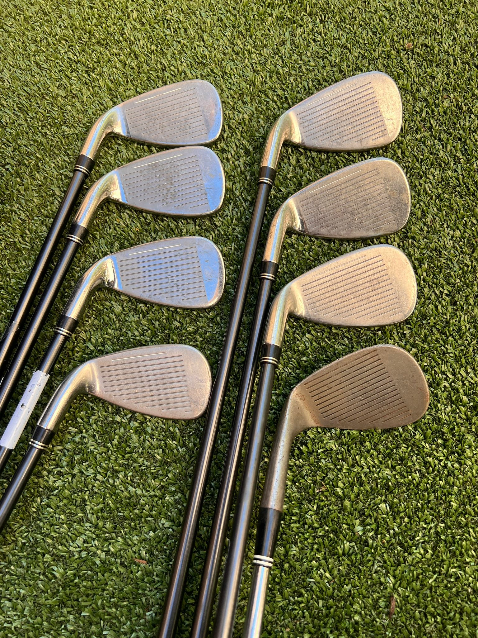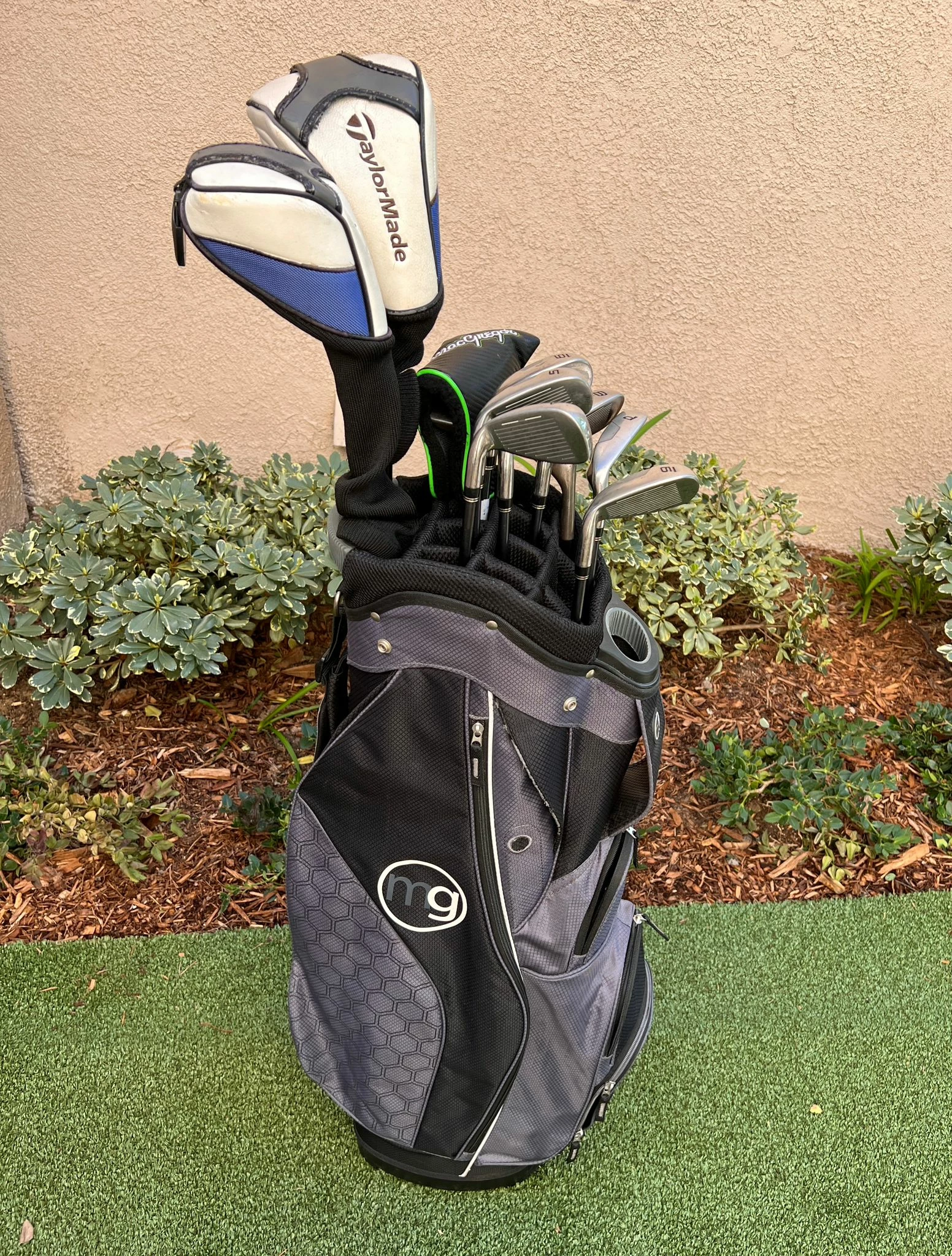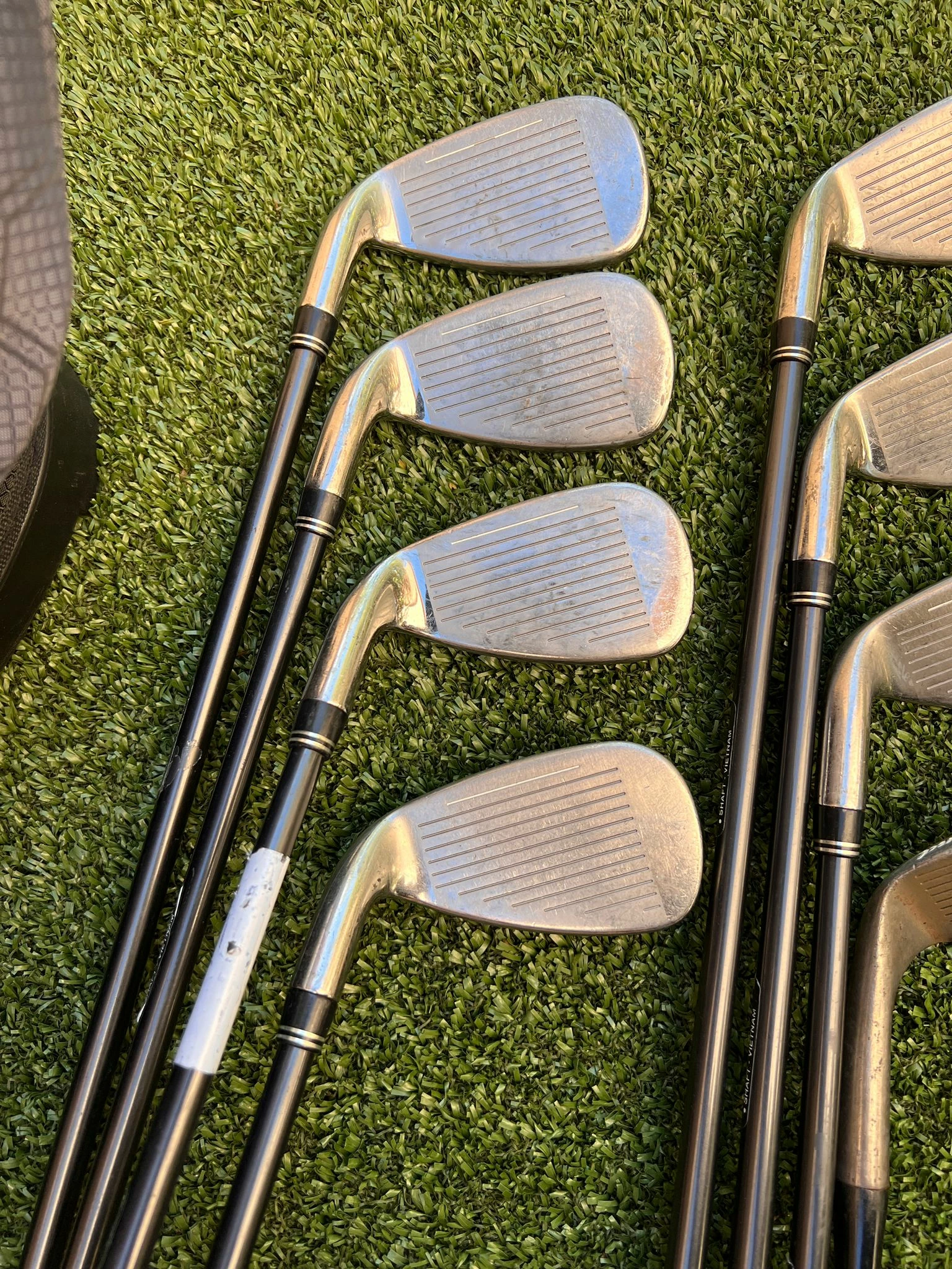 - Condition:Â Cart Bag In Excellent Condition + Rainhood, Iron Set And Woods Still In Good Shape, All Grips Are In Decent Shape, Excellent For Starters!